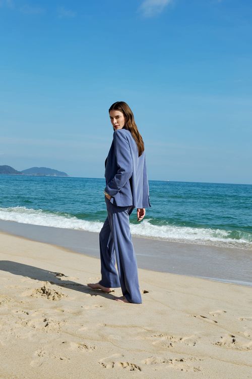 Com estrutura reta e bem definida, o blazer traz lapelas largas, ombros levemente marcados e fechamento frontal por um botão, criando uma silhueta alongada e elegante. Ideal para ser usado tanto em composições clássicas com camisa, quanto de forma ousada com top ou direto na pele, como na proposta da nossa campanha. Seja usado com camisa, top, ou direto sobre a pele, o Blazer Dalila se adapta com facilidade a diferentes estilos e ocasiões — do escritório à beira-mar.