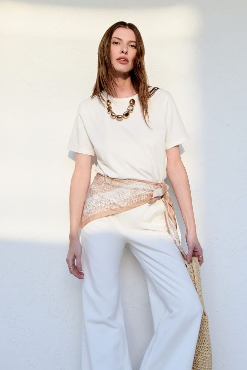 1. slow style, roupas, roupa feminina, calça pantalona feminina, calça de sarja lilian off white, calça ampla, pantalona elegante