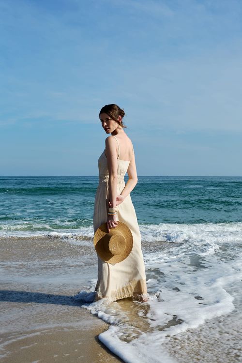 O Vestido Dara une leveza e sofisticação em uma peça versátil para o verão. Feito em viscose com linho, oferece frescor, caimento fluido e toque macio.