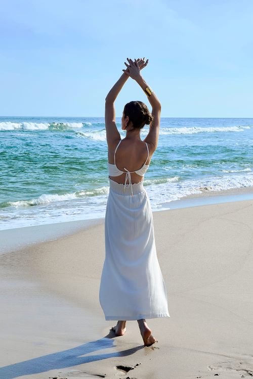 O Vestido Diva é sinônimo de leveza, elegância e feminilidade. Ideal para os dias ensolarados, ele combina conforto e sofisticação em uma peça versátil que transita facilmente do casual ao elegante com apenas alguns acessórios. Confeccionado em tecido fluido com toque suave, de algodão, viscose e linho, o modelo apresenta decote frente única com detalhe central torcido e recorte sutil abaixo do busto, que valoriza o colo de forma delicada. A cintura com lastex proporciona ajuste perfeito ao corpo, garantindo conforto e uma silhueta naturalmente marcada. Seu caimento leve e comprimento longo conferem movimento e frescor ao look, tornando o Vestido Diva a escolha perfeita para produções de verão, passeios à beira-mar ou ocasiões especiais ao ar livre.